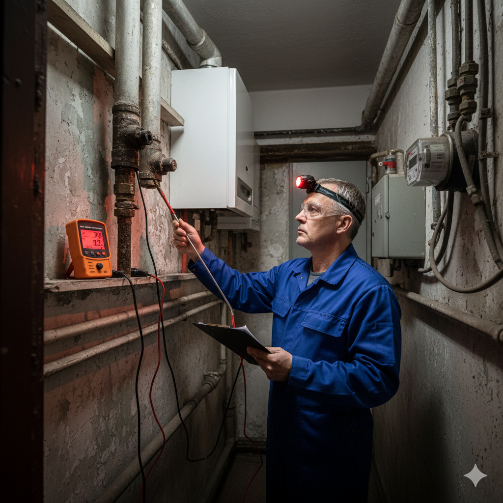 A hibajavítás részeként tömítéseket cseréltem, tisztítottam a készüléket, és helyreállítottam az égéstermék-elvezetést. Emellett javaslatot tettem szén-monoxid érzékelő telepítésére és rendszeres műszeres ellenőrzésre.